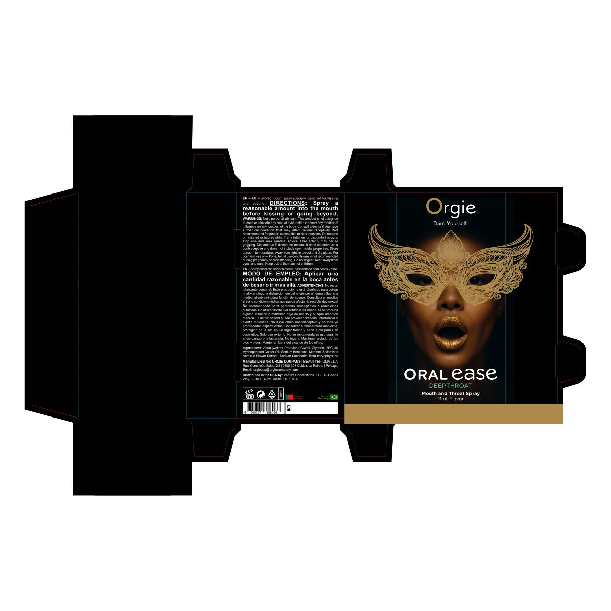 Oral Ease – Deepthroat, mouth and throat spray developed to enhance oral sex — especially deep throat — with a refreshing mint flavor and free of anesthetic ingredients. Designed for those who want to go deeper with comfort and confidence.